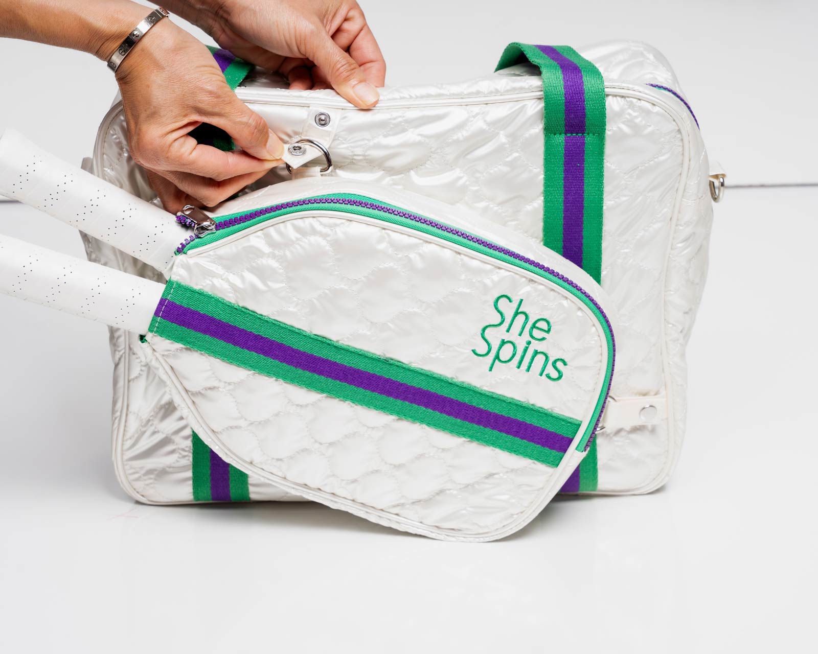 Our Smartly Detachable, Truly Multi-Functional PickleBall Bag is created in L.A. by a Pickleball enthusiast, Fashion Designer Pro –a 9-to-5er who knows what it’s like to navigate through life and airports!